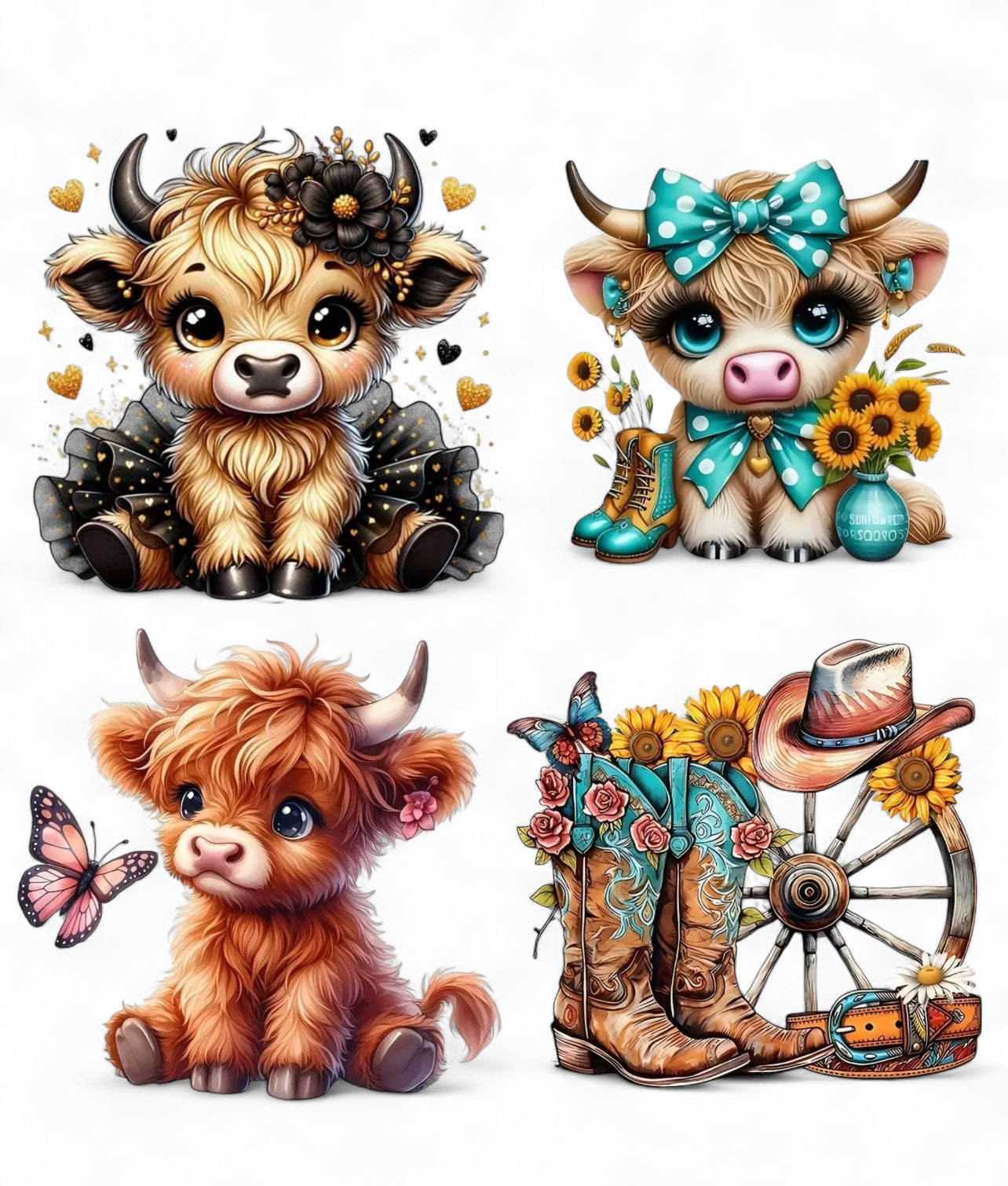 Teal Sunflowers Cow Transfer Sheet